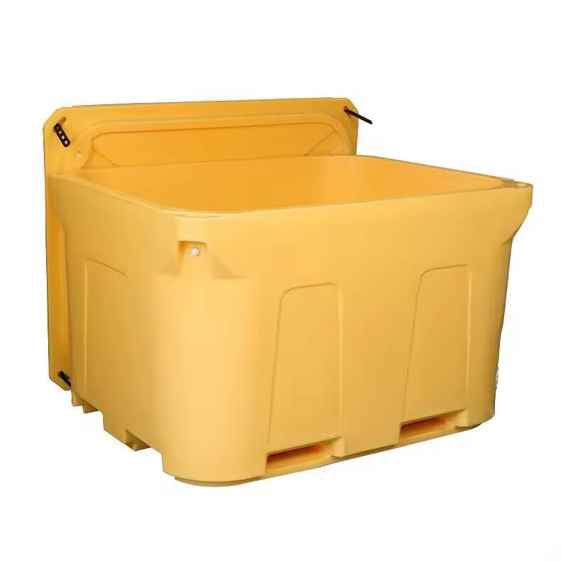 El contenedor de hielo rotomoldado de gran capacidad 1000L es un contenedor aislado comercial diseñado para preservar la frescura de los mariscos durante el almacenamiento y el transporte.Construido con aislamiento de espuma de polietileno y poliuretano de uso pesado, esta caja de enfriamiento industrial proporciona una retención de temperatura excepcional sin necesidad de electricidad.